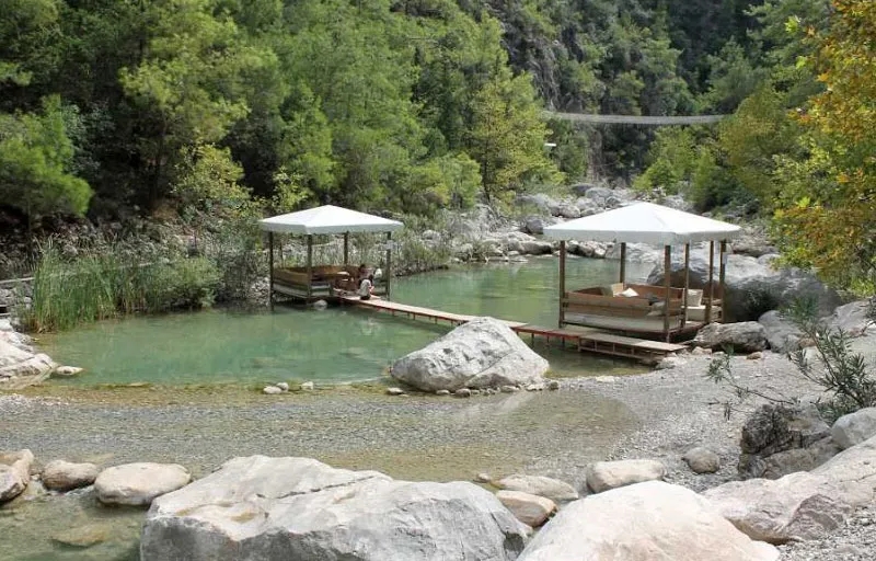 Die Schönheit der Schlucht, wo die Wörter nicht ausreichend sind, führt Sie durch einen Gebirgsweg über die alte Lykia Strasse bis zu Hochland. Auf die Strasse sind Grabsteine, Mauern und Schrifttafeln vorhanden. Das Schneewasser von der Schlucht wird über Bach und durch den Wald ins Meer fließen.