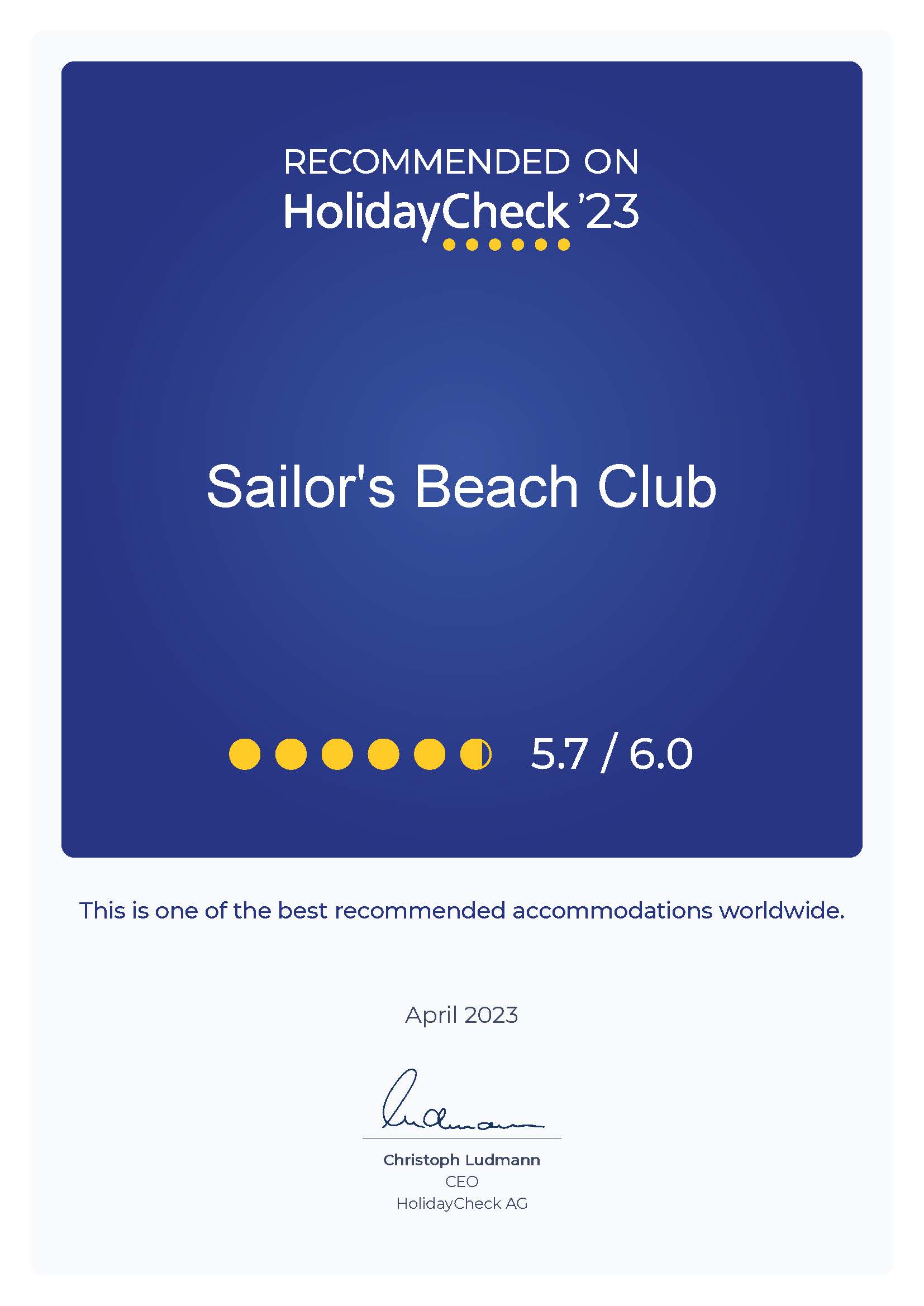 HolidayCheck ’23 Sailor’s Beach Club Is One Of The Best Recommended Accommodations Worldwide