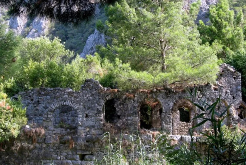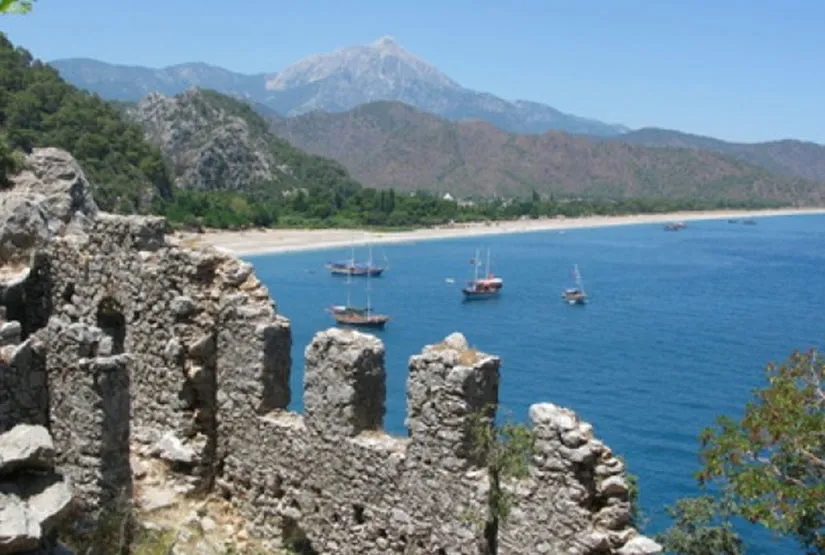 Akçay deresinin her iki yanına kurulmuş antik kent olan ve kuruluşu Helenistik döneme denk gelen Olympos, Likya bölgesinin en büyük kentlerinden birisi olup, adını hemen yanı başındaki 2375 metre yüksekliğindeki Tahtalı Dağı'ndan almaktadır.